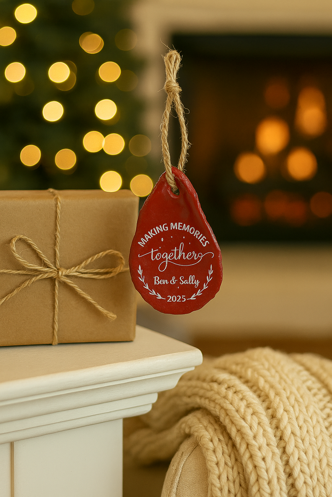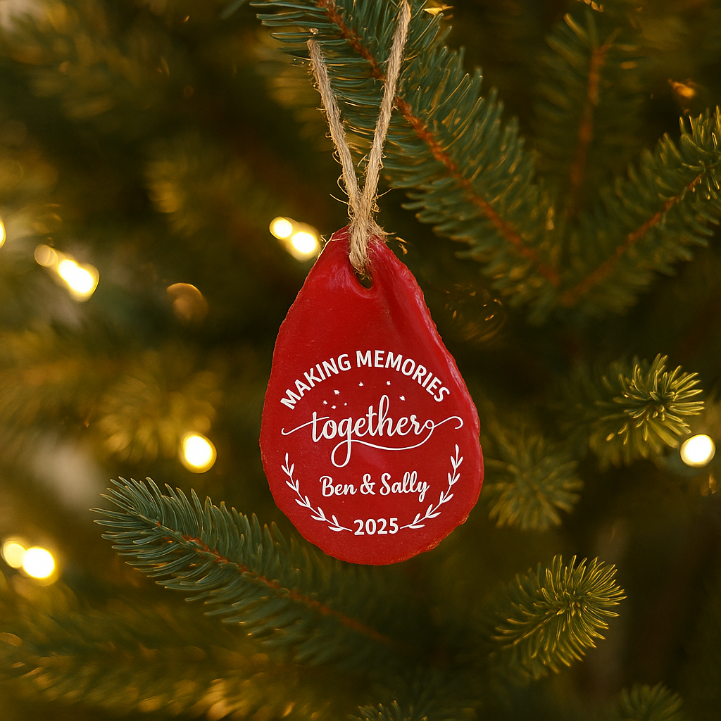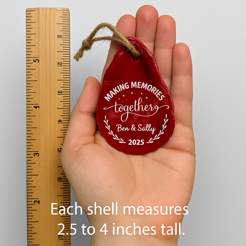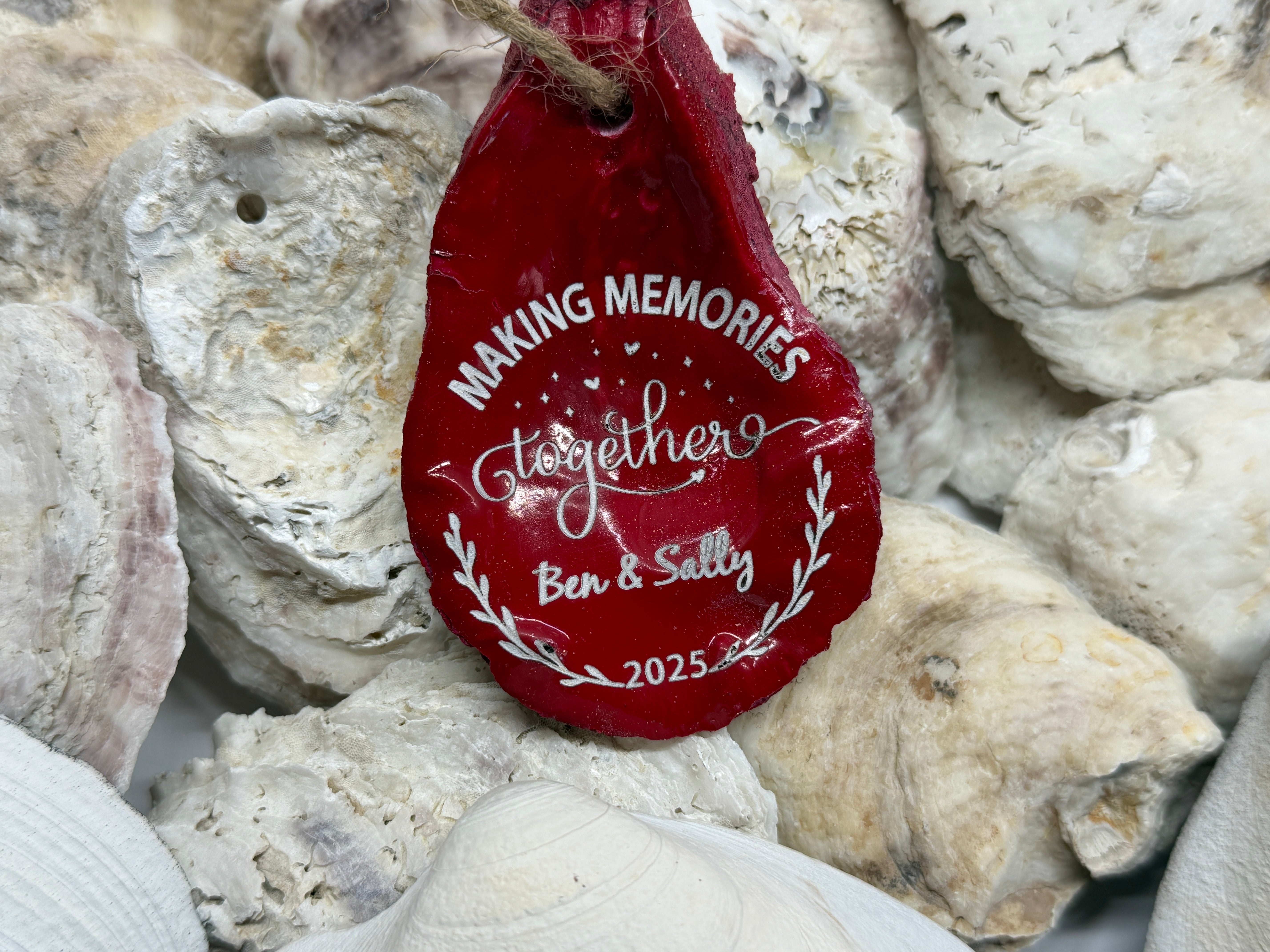 Making Memories Together – Personalized Laser Engraved Oyster Shell Ornament